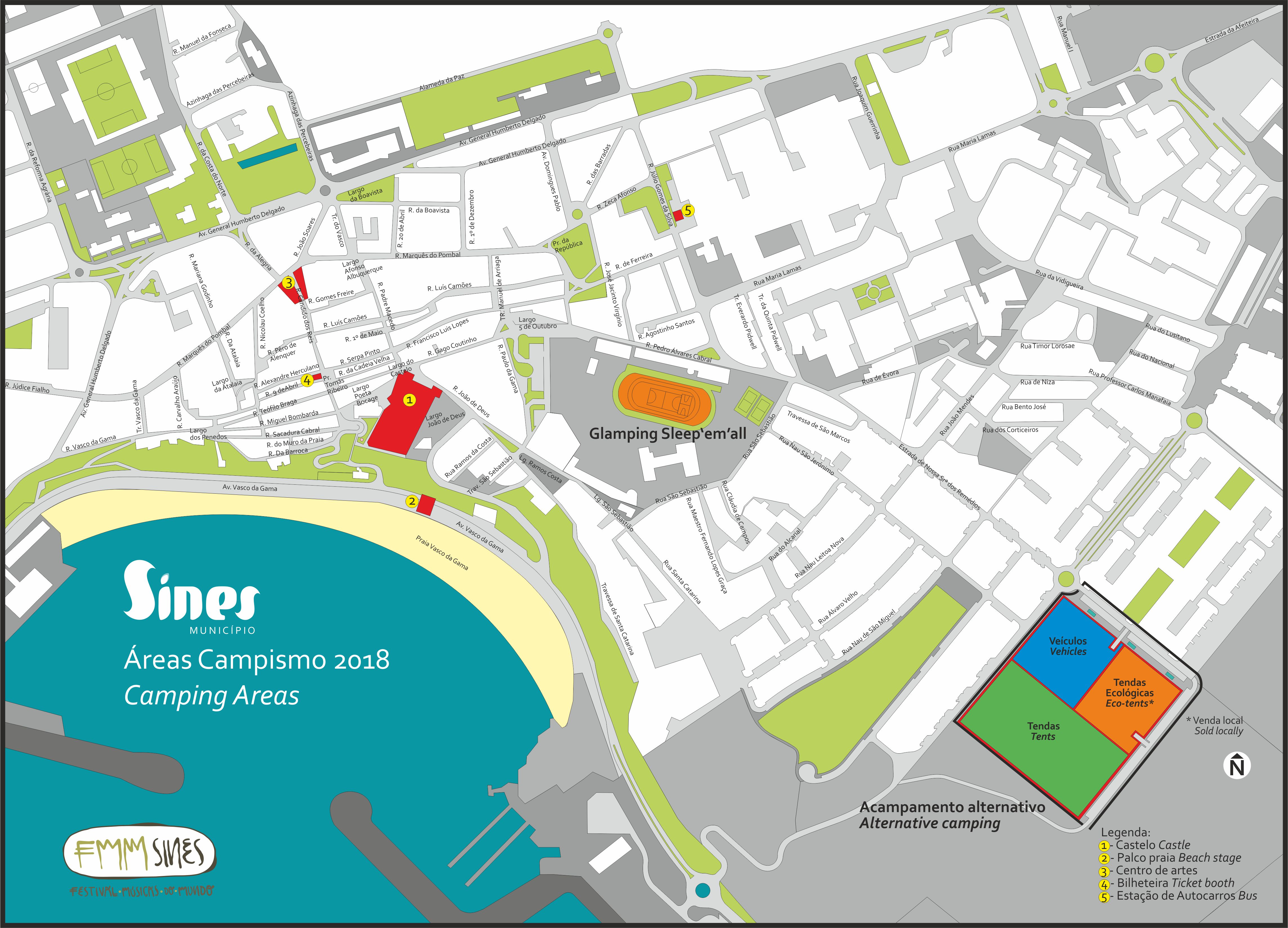 Zona nascente da cidade de Sines, junto à Estrada do Encalhe, a cerca de 15-20 minutos a pé dos palcos do Castelo e da Avenida Vasco da Gama.