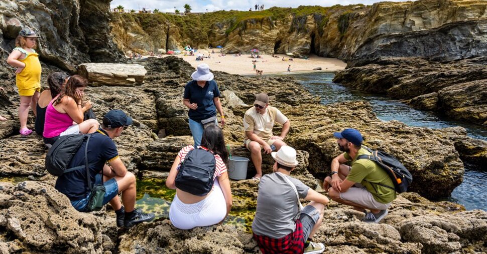 Observação, na maré baixa, de animais e algas marinhos para conhecer melhor a sua biologia.